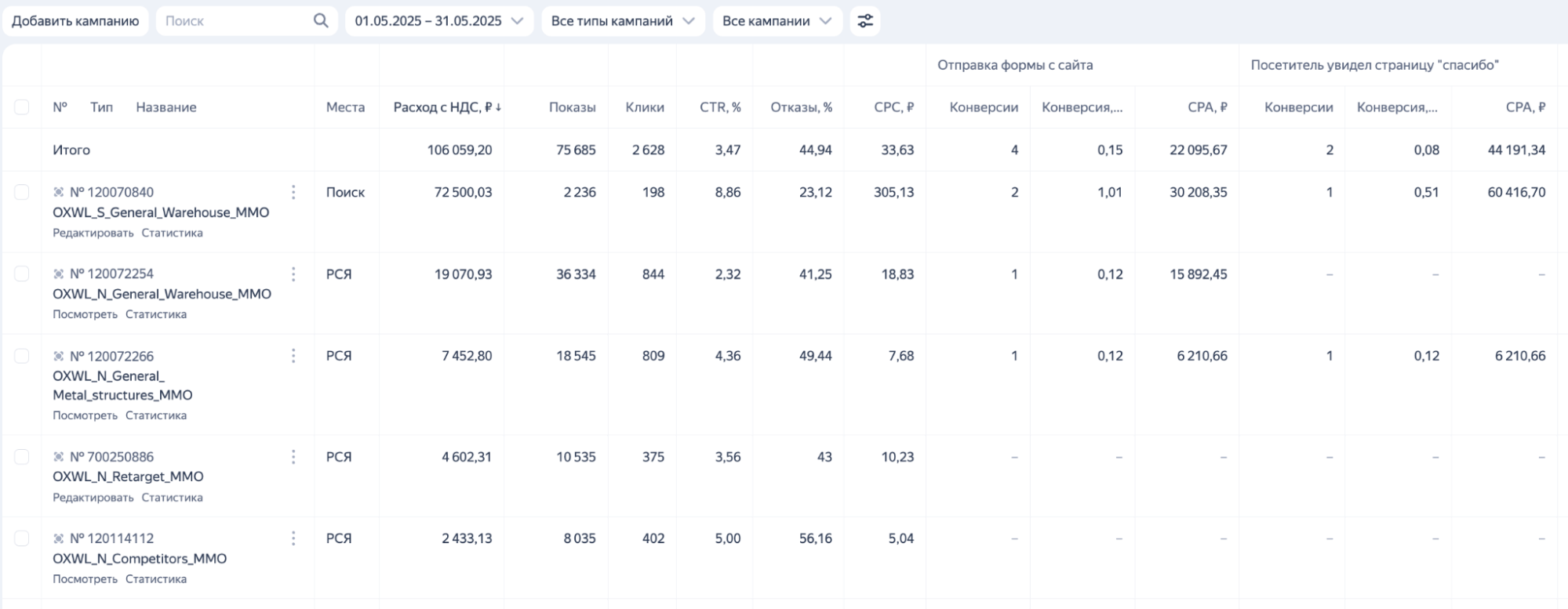 Большая часть квал заявок с почты (т.е. с Поиска), с РСЯ много фрода и не целевых. По цене квал. лида Поиск выходил дороже. Также предполагали, что часть обращений на почту могло быть с РСЯ, но маркетолог уверял, что упор нужно делать на Поиск.